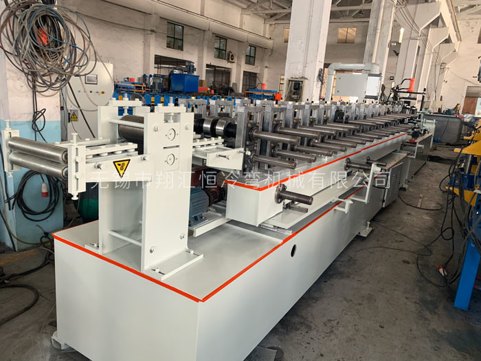 成型設備由手動(dòng)供料裝置,鏈條傳動裝置,成型輥道及主機,成型後液壓切斷裝置,成品托料裝(zhuāng)置等組成。